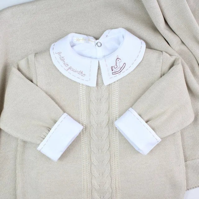 Macacão de Tricô – Elegância e aconchego para seu bebê sentir-se seguro e protegido.