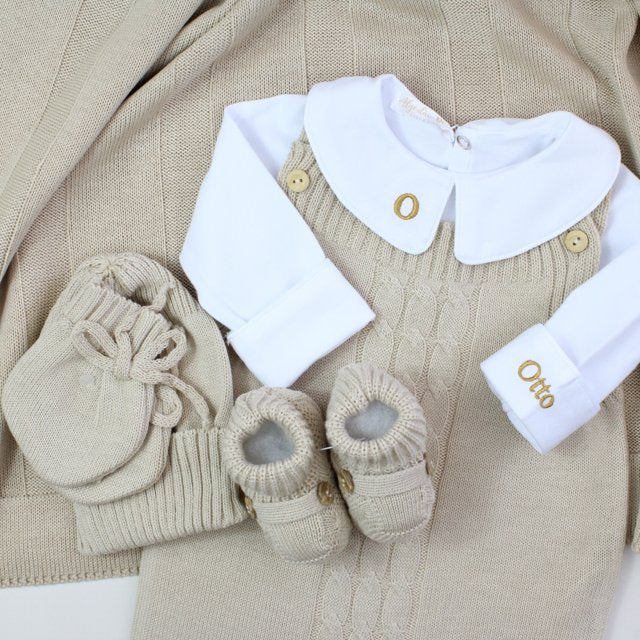 Saída De Maternidade Masculina Bebê Tricô Areia